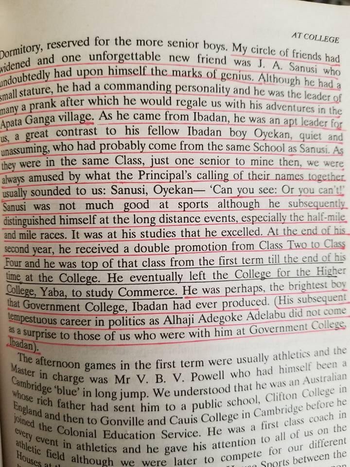 There was a book Dr Olunloyo showed us–When We Were Young–written by S. Biobaku. He read a particular part to us about Adegoke Adelabu of the Penkelemesi fame and I was very surprised to learn that he was previously called J.A. Sanusi.